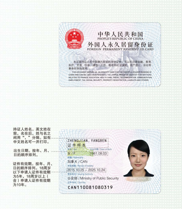 2017版外國(guó)人永久居留身份證為卡式電子證件,參照我國(guó)第二代居民身份證標(biāo)準(zhǔn)設(shè)計(jì)制作。